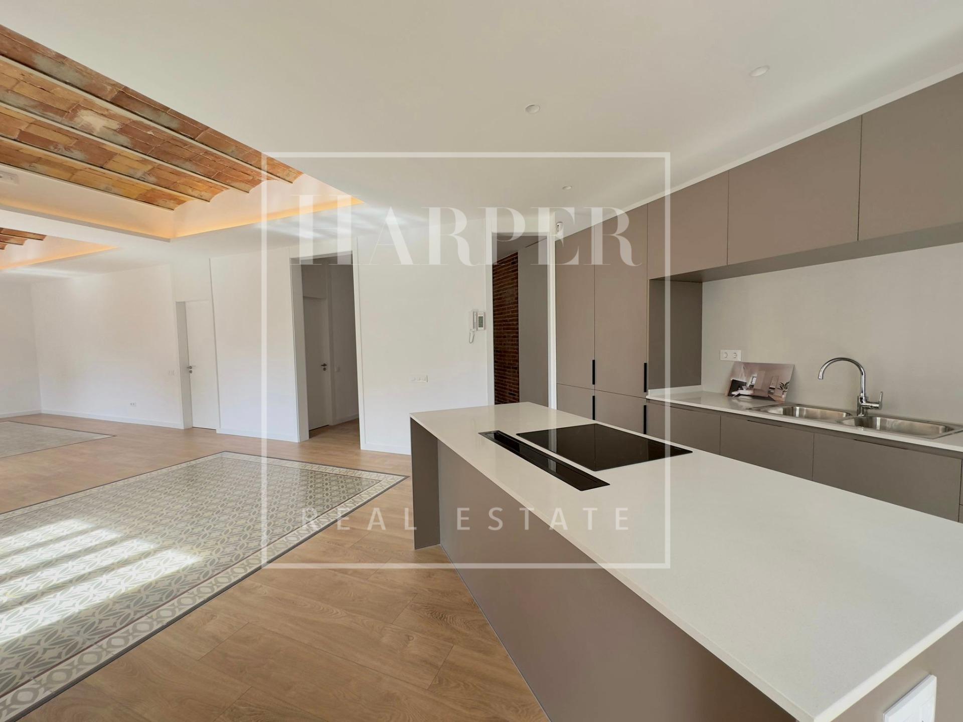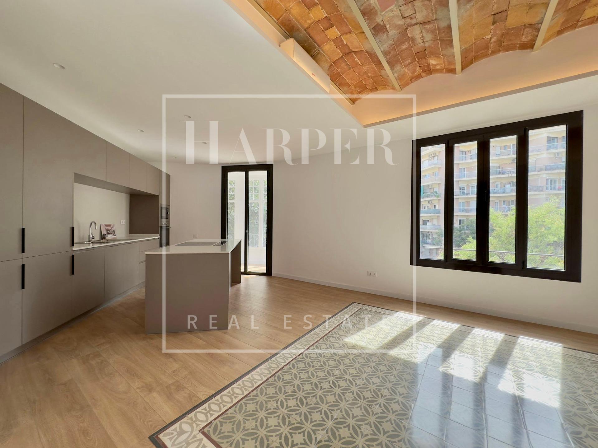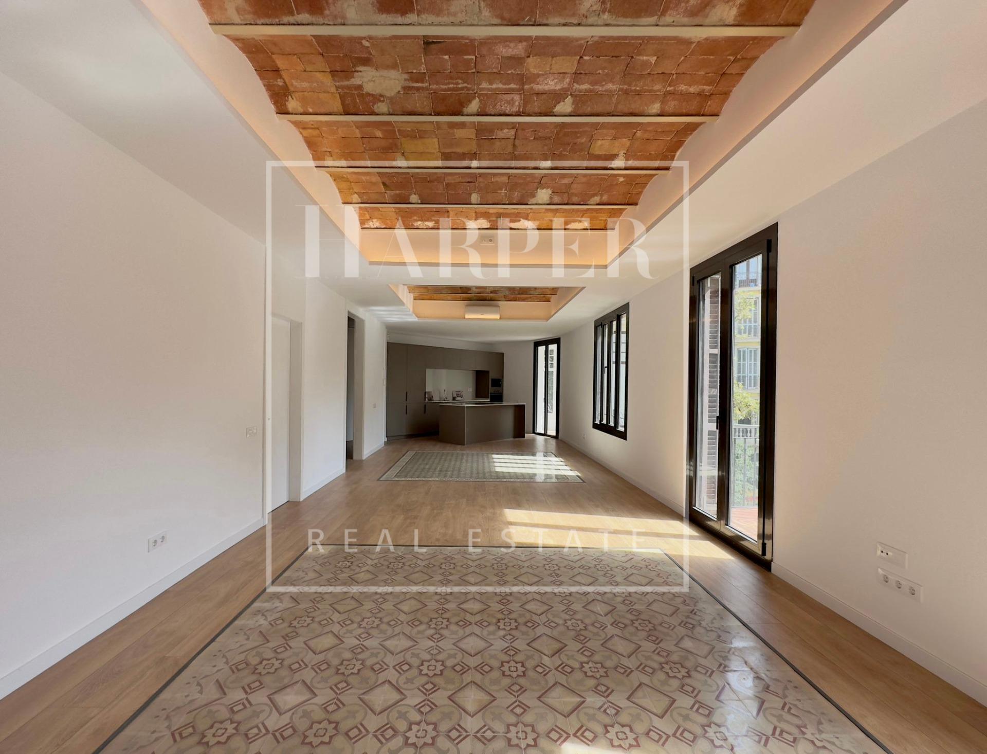 Este magnífico apartamento de 172 metros cuadrados es una verdadera joya en el codiciado distrito de Sant Antoni. La vivienda cuenta con tres amplias habitaciones dobles y dos baños, ofreciendo un espacio excepcional para toda tu familia.~~Recién reformado, este apartamento es un ejemplo de perfección y buen gusto. La reforma ha sido realizada con los más altos estándares de calidad, y cada detalle ha sido cuidadosamente diseñado para crear un ambiente moderno y sofisticado. Al entrar, te recibirán techos con la tradicional vuelta catalana, una característica que agrega un toque de encanto histórico a la propiedad.~~Los suelos hidráulicos, utilizados de manera creativa como elemento decorativo, se combinan a la perfección con suelos de parquet en un juego de contrastes que añade calidez y personalidad al espacio. La carpintería exterior de aluminio con vidrio de altas prestaciones térmicas y acústicas garantiza un ambiente tranquilo y confortable en todo momento.~~La vivienda es totalmente exterior y disfruta de luz natural durante todo el día, creando un ambiente luminoso y alegre. Además, cuenta con aire acondicionado para tu comodidad.~~La cocina es de estilo americano y está totalmente equipada con electrodomésticos de última generación, lo que la convierte en el lugar perfecto para dar rienda suelta a tu creatividad culinaria. Además, una encantadora galería de cristal ofrece un espacio adicional ideal para el almacenamiento o para disfrutar de una taza de café con vistas a la ciudad.~~Este apartamento representa una oportunidad única para vivir en el deseado distrito de Sant Antoni, conocido por su ambiente vibrante, su arquitectura modernista y su oferta gastronómica. No dejes escapar esta oportunidad de adquirir una propiedad excepcional en uno de los lugares más emocionantes de Barcelona.~Certificado Energetico: E – 162.8 E – 28.9~¡Contáctanos hoy mismo para obtener más información y concertar una visita a este tesoro en Sant Antoni!~