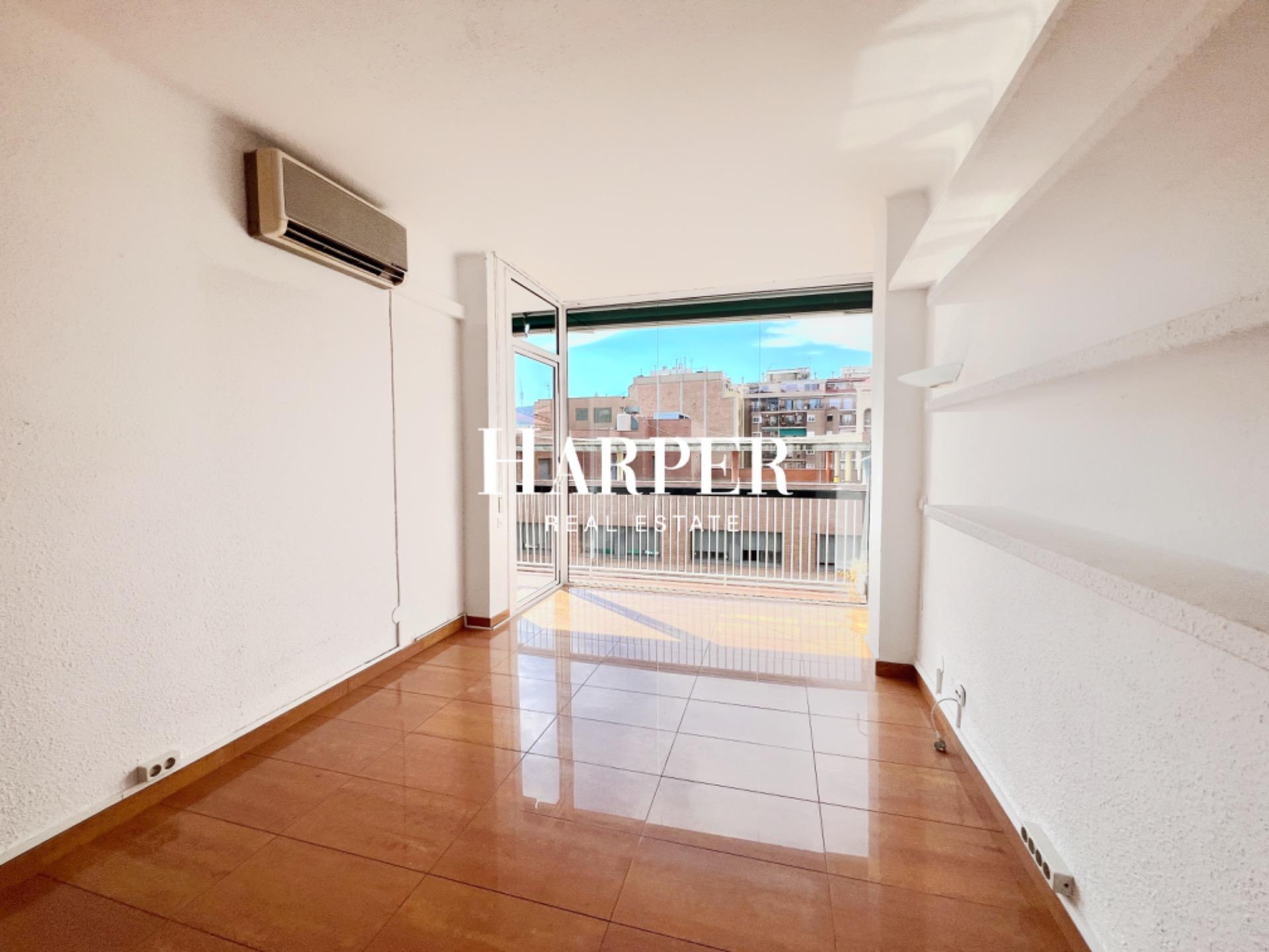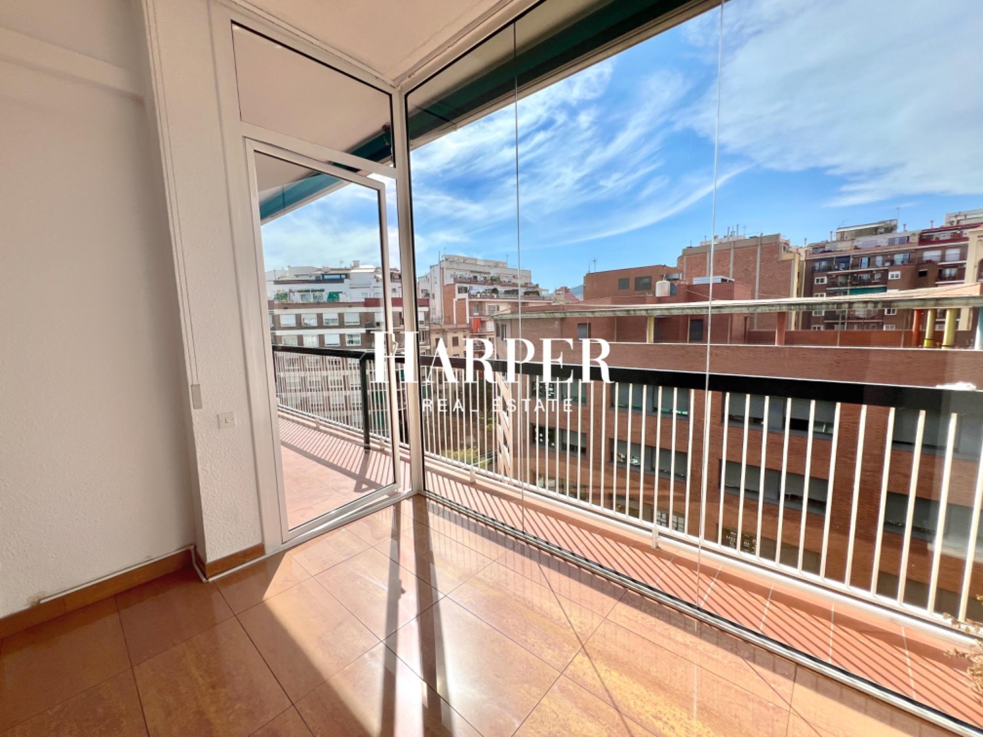 Este encantador apartamento de 94 metros cuadrados está situado en Gracia, a solo un corto paseo de Passeig Sant Joan, en un barrio animado y de fácil acceso. Ubicado en un piso superior, cuenta con vistas panorámicas y una abundante luz natural que inunda la amplia sala de estar-comedor, la cual se abre a una encantadora terraza perfecta para disfrutar del clima mediterráneo.~~El piso dispone de una cocina independiente con galería, totalmente equipada para satisfacer todas sus necesidades culinarias, y cuatro dormitorios que ofrecen un amplio espacio y comodidad para una familia o para aquellos que buscan áreas adicionales para trabajar o relajarse. Además, hay dos baños completos, cada uno con ducha, para mayor conveniencia.~~El apartamento está en excelentes condiciones, con suelos de porcelana en las áreas comunes y parquet en los dormitorios, creando un ambiente cálido y acogedor. También incluye aire acondicionado en la sala de estar, armarios empotrados para un almacenamiento óptimo, ventanas de aluminio que aseguran un excelente aislamiento térmico y acústico, un toldo en la terraza para mayor comodidad en los días soleados y un sistema de videoportero para la seguridad y tranquilidad de los residentes.~~El edificio ofrece servicio de conserjería y ascensor, añadiendo una capa extra de confort y seguridad a esta excelente propiedad. En resumen, este apartamento proporciona una combinación ideal de ubicación privilegiada, confort y funcionalidad, lo que lo convierte en una oportunidad única para cualquiera que busque residir en una de las zonas más codiciadas de Barcelona.~~Certificado energético: E – 143 E – 30~